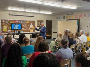 Jason Wright speaks about the Kindness Card Movement to a church group in Maryland.
