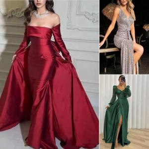 4. Long-Sleeve Sparkly Satin Dress with Slit: Incorporates a shimmer overlay that passed skin-comfort testing while maintaining flexibility.