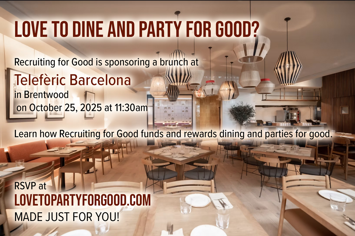 SANTA MONICA, CA, UNITED STATES, October 14, 2025 /EINPresswire.com/ -- Recruiting for Good is a value driven staffing agency that generates proceeds by delivering staffing solutions to fund Girls Design Tomorrow™ (Gigs for Girls), three-year dining treats, and the sweetest parties.
