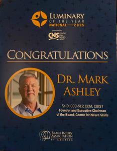 BAKERSFIELD, Calif., Nov. 21, 2025 (GLOBE NEWSWIRE) -- The Brain Injury Association of America (BIAA) honored Dr. Mark J. Ashley, Founder and Executive Chairman of the Board of Centre for Neuro Skills (CNS), as Luminary of the Year last Friday, November 14, 2025, at the National Press Club in Washington, D.C. The annual award celebrates individuals who have made outstanding contributions to the field of brain injury. The event shines a spotlight on powerful stories of resilience, courage and compassion from the brain injury community.