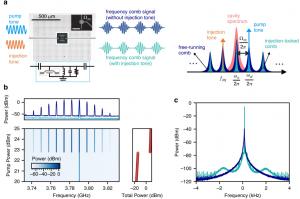 In the experiment, microwave frequency combs were generated by strongly driving the superconducting optomechanical circuit with a blue-detuned pump tone, pushing the system into a regime of self-sustained mechanical oscillation. This oscillation periodically modulates the cavity resonance, producing a series of equally spaced microwave spectral lines. To stabilize these combs, the team injected an additional microwave tone close to specific comb peaks and carefully tracked how the system responded as the injection frequency and power were varied.
